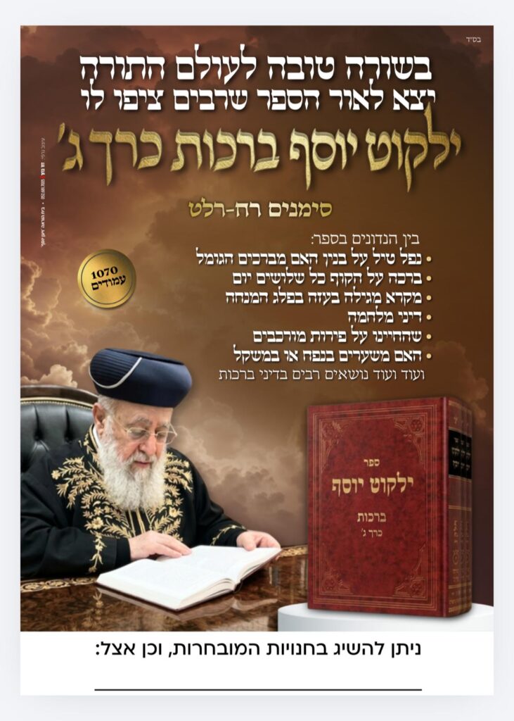 מאת מרן הראשון לציון, פוסק הדור, הגאון רבי יצחק יוסף שליט"א, מחבר סדרת הספרים "ילקוט יוסף"